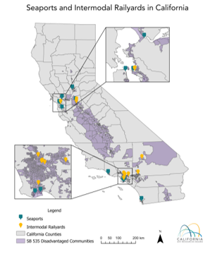 Drayage trucks are in-use class 7 and 8 on-road vehicles that transport containers and bulk goods to and from seaports and intermodal railyards. Land ports of entry, which provide controlled entry to or departure from the United States, are not considered seaports or intermodal railyards.